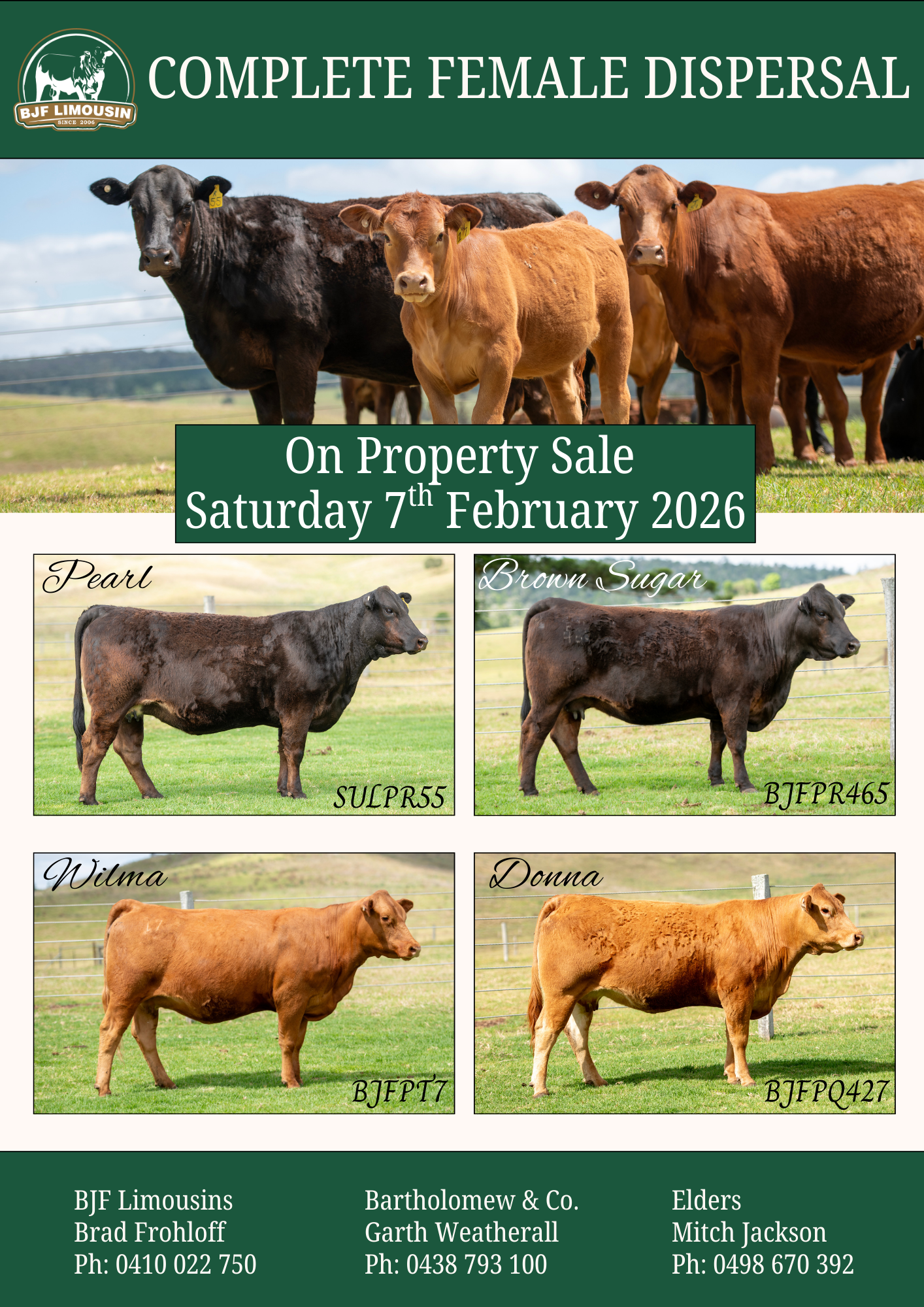 Breeding modern Limousin cattle for the benefit of the Australian beef industry. Focusing on the strengths of Limousin females (good udders, good milk, tremendous longevity & excellent fertility). All BJF Limousin calves are polled, breedplan recorded and docility scored. Combine this with great carcases and high meat yield, Limousin cattle have an important role to play in the future of the Australian beef industry.